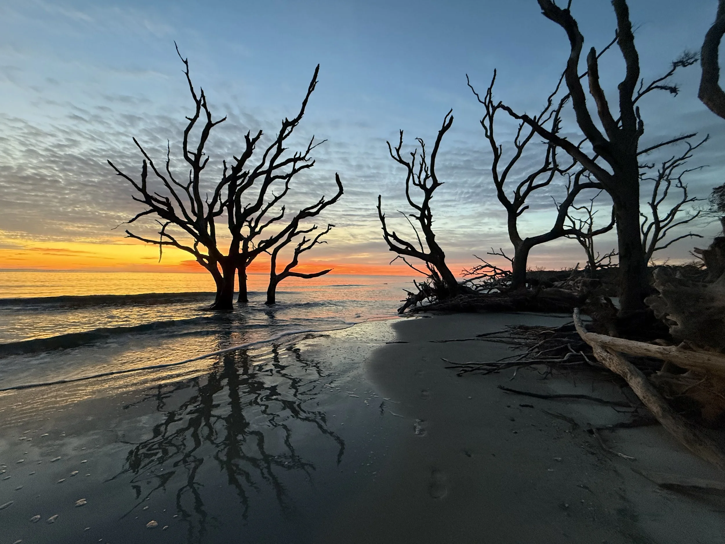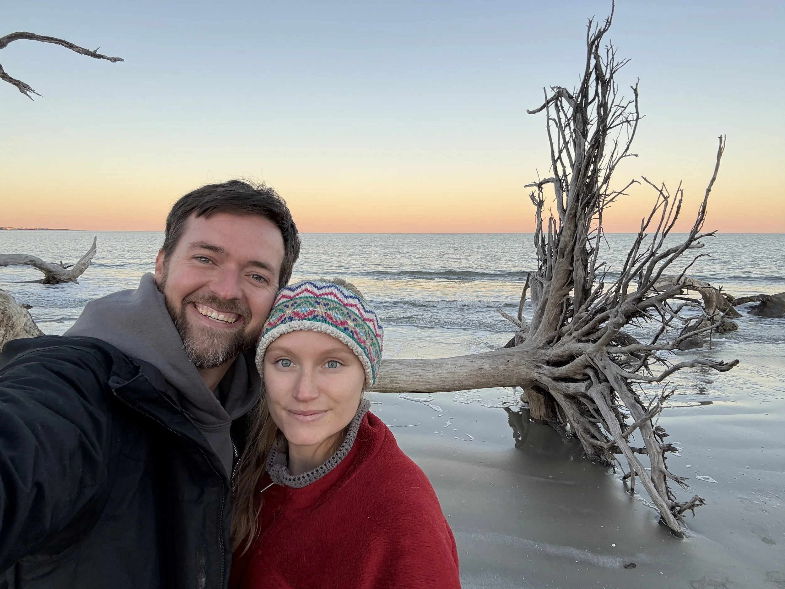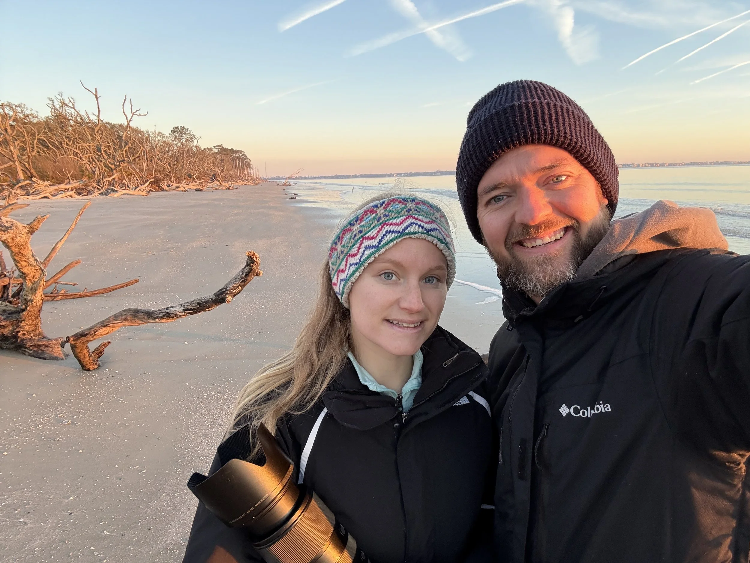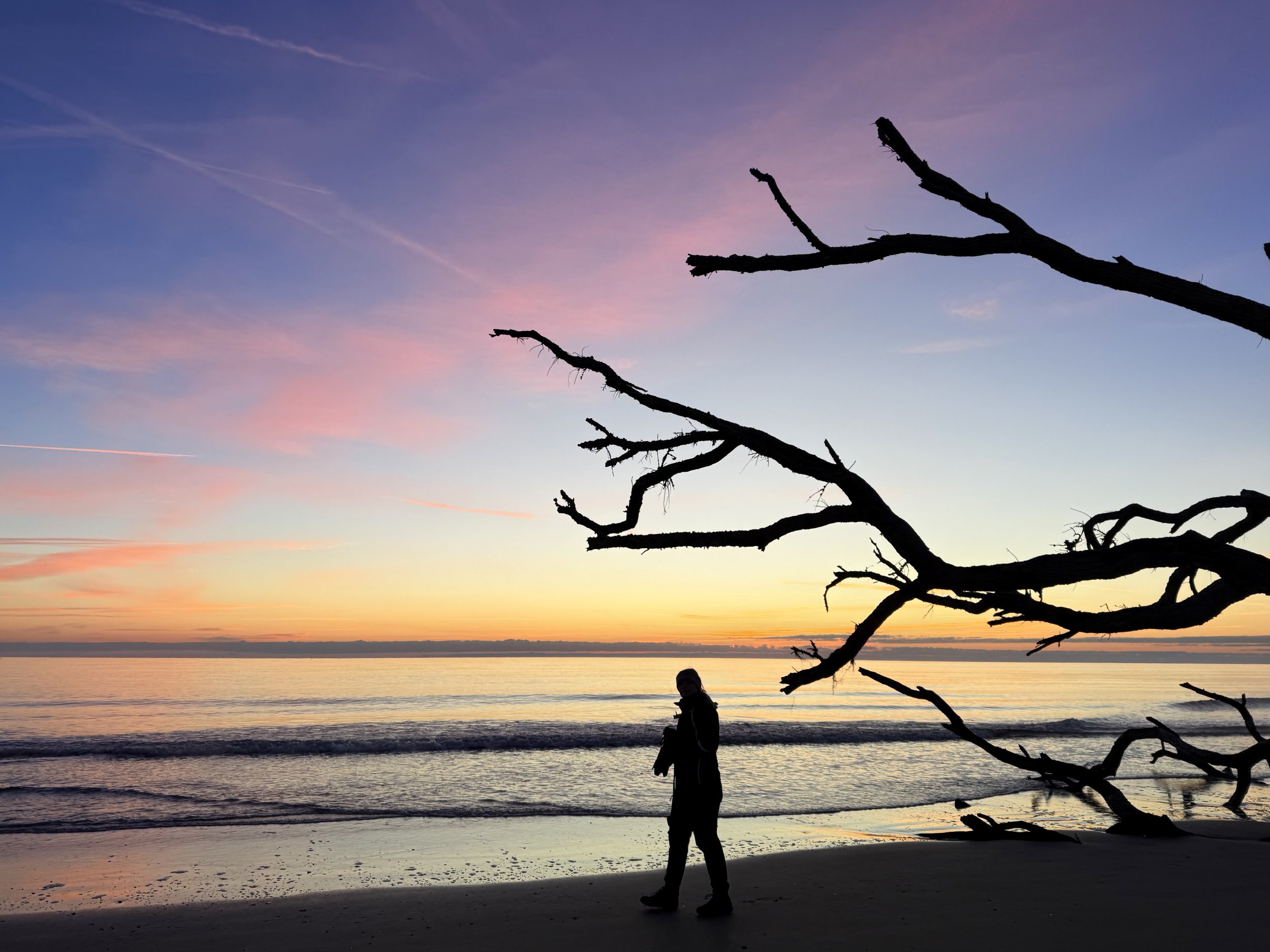 I have visited Jekyll Island many times, and particularly love going during the holiday season when they decorate the big oak trees with holiday lights. This time, was our first camping trip there! We visited with my sister Logan and brother in law Joe and had a fantastic few days! There is so much untouched, natural beauty on Jekyll Island, and very little development. It is an amazing place to hike or bike around and enjoy the gorgeous spanish moss dripping off the huge oak trees. One of our favorite places to visit on the island, especially at sunrise is Driftwood Beach.