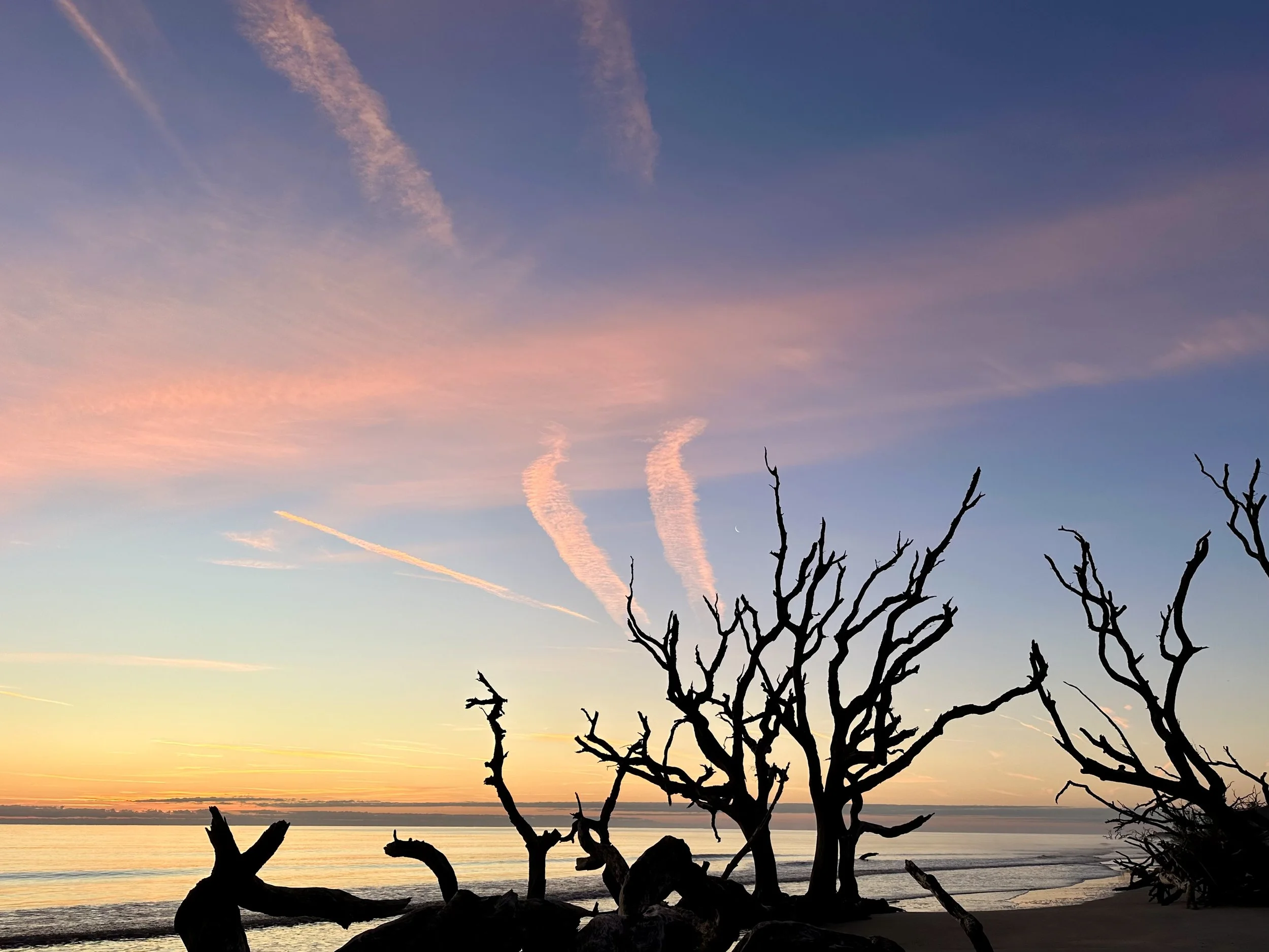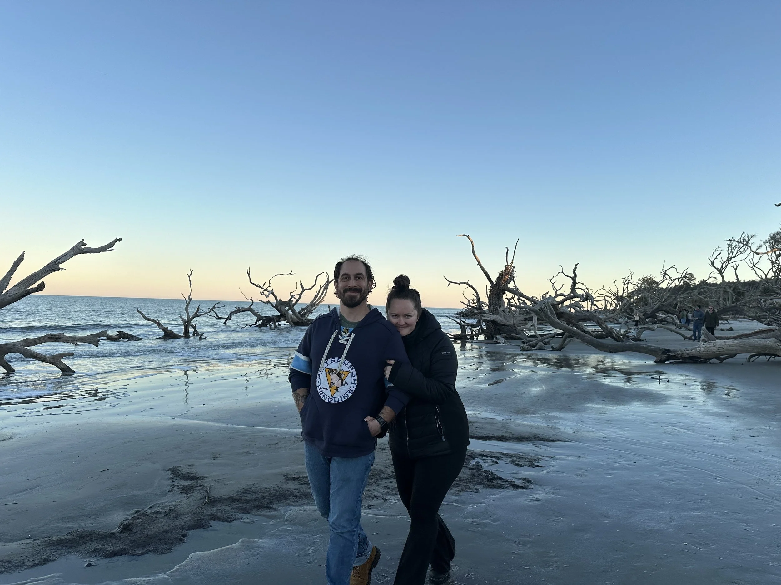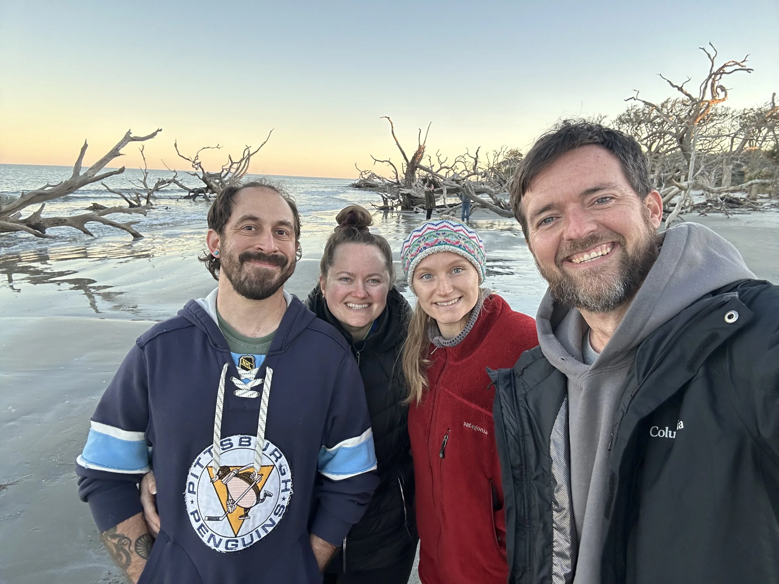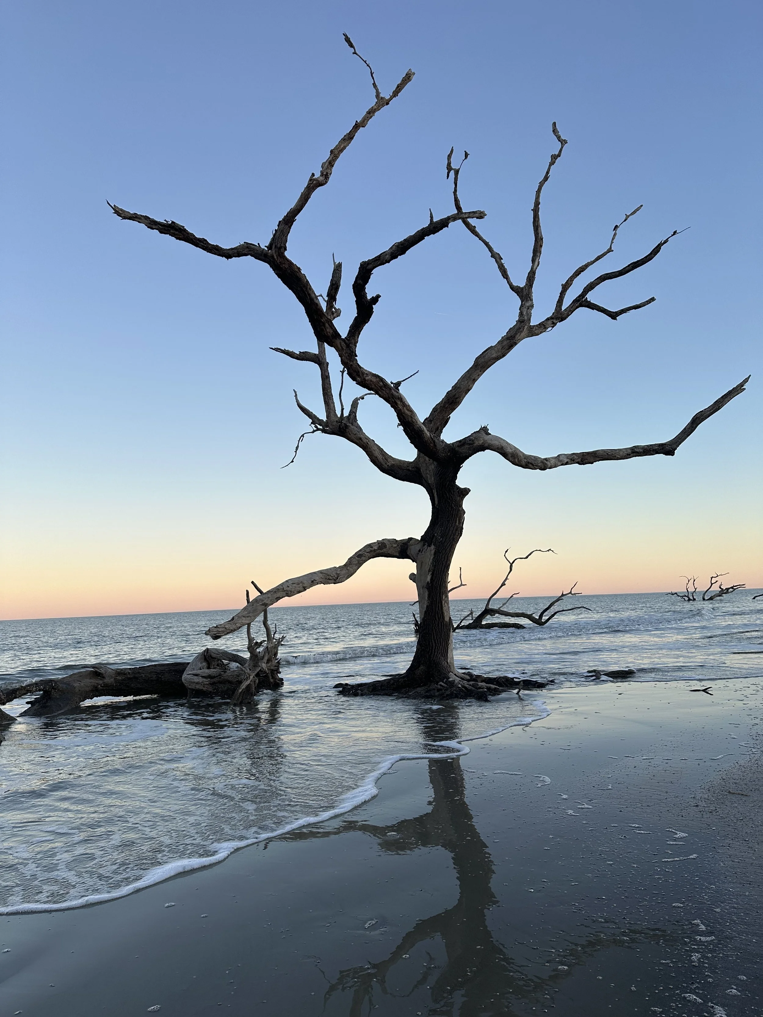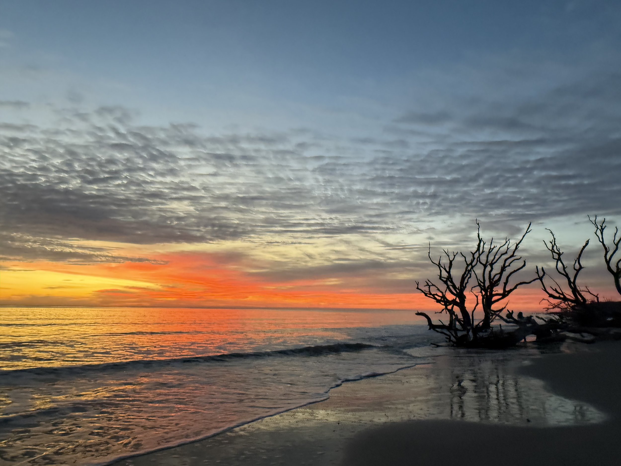 I have visited Jekyll Island many times, and particularly love going during the holiday season when they decorate the big oak trees with holiday lights. This time, was our first camping trip there! We visited with my sister Logan and brother in law Joe and had a fantastic few days! There is so much untouched, natural beauty on Jekyll Island, and very little development. It is an amazing place to hike or bike around and enjoy the gorgeous spanish moss dripping off the huge oak trees. One of our favorite places to visit on the island, especially at sunrise is Driftwood Beach.