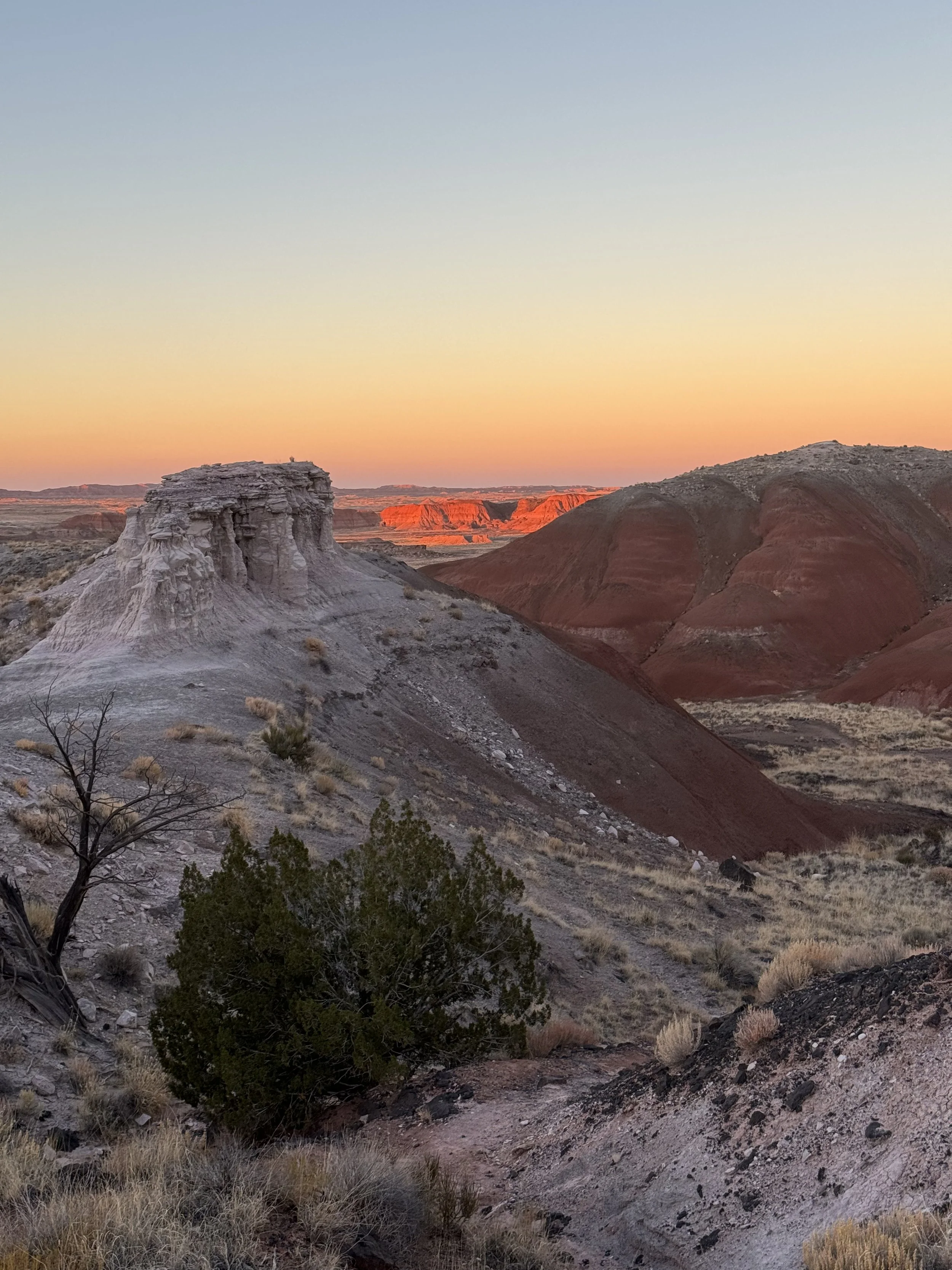 After visiting Sedona Ray and I headed to Petrified Forest National Park. I was really looking forward to exploring the “Painted Desert” landscape and seeing Petrified Wood as well. We spent a few days in the area. Our favorite trails were the Blue Mesa Trail, Painted Desert Rim Trail, and the Onyx Bridge Trail. On the Onyx Bridge trail you can really immerse yourself in the environment and get lost in the badlands. (Click photos to view full size)